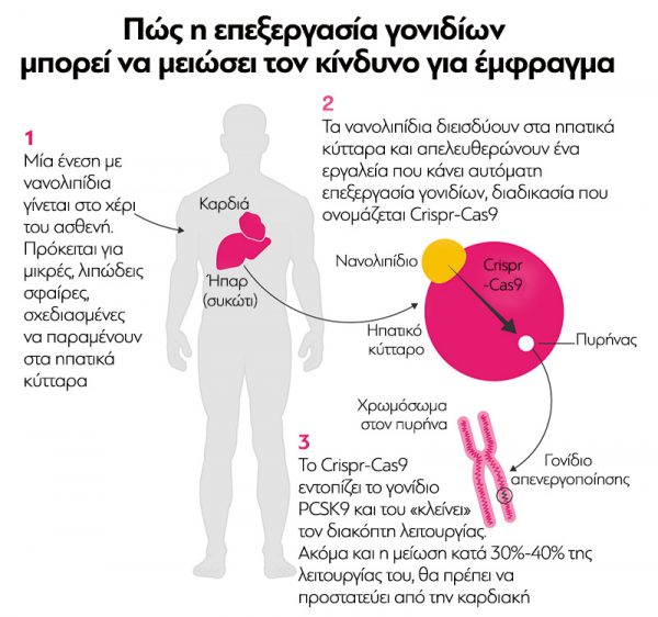 Σύμφωνα με όσα ανακοίνωσαν γενετιστές και καρδιολόγοι από τις ΗΠΑ, το πρώτο δραστικό γονιδιακό εμβόλιο που βοηθά άμεσα στη μείωση του κινδύνου εκδήλωσης καρδιακής προσβολής είναι σχεδόν έτοιμο. Η ανοσοποίηση θα γίνεται με μόνο μία ένεση στο μπράτσο και θα αντιμετωπίζει με επιτυχία την πρώτη αιτία θανάτου, δηλαδή το καρδιαγγειακά επεισόδια.